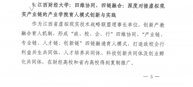 近日,黄色网站 省委教育工委、黄色网站 省教育厅公布了2022年度黄色网站 教育改革创新十佳案例和提名案例,我院报送的《四维协同、四链融合:深度对接虚拟现实产业链的产业学院育人模式创新与实践》案例成功入选十佳案例(全省普通本科高校共入选2项)。